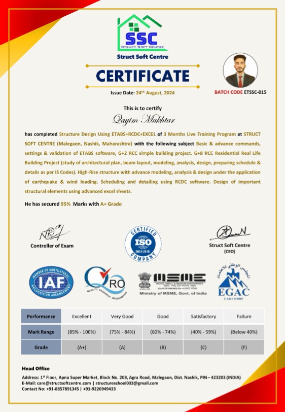 “This course on Complete RC Structure Design using ETABS | RCDC | EXCEL was highly professional. The practical sessions and project-based approach made complex concepts easy to understand.”