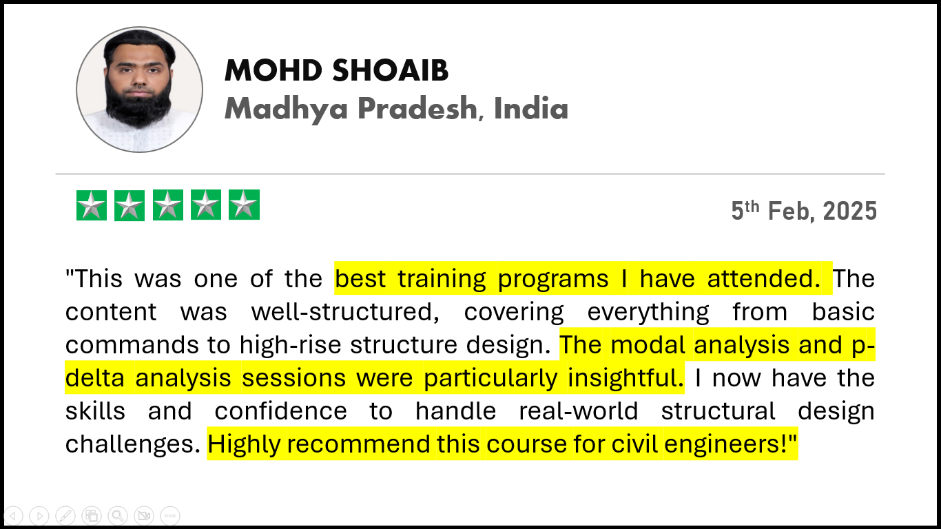 If you are doing your bachelor in Civil Engineering or Master in Structural Engineering, & want to become structural engineer in future. So, this workshop will definitely help you to increase your knowledge and will give real exposure to how professionals are designing the structures by using ETABS software.