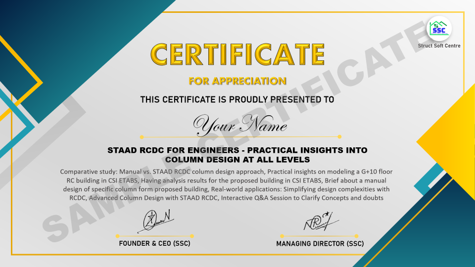 Earning a certificate of completion from reputed platform, which deliverers the valuable knowledge related to your filed, holds remarkable benefits, starting with bolstering your resume. This certificate signifies your active participation in a specific course/training program and demonstrates to potential employers that your knowledge aligns with their skill prerequisites. It's a competitive edge that can set you apart from other candidates in the job market. Therefore, Struct Soft Centre being it self ISO certified as well as MSME resisted training center, provides a valuable training completion certificate to all our participants. This certificate has the accepted in India as well as over the globe.